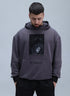 Nuanța Shadow Grey este special aleasă pentru a evidenția patch-ul aplicat manual pe față — o piesă textilă imprimată serigrafic cu un motiv mitologic în stil dark-art, cu margini raw pentru un look autentic și ușor brutalist.